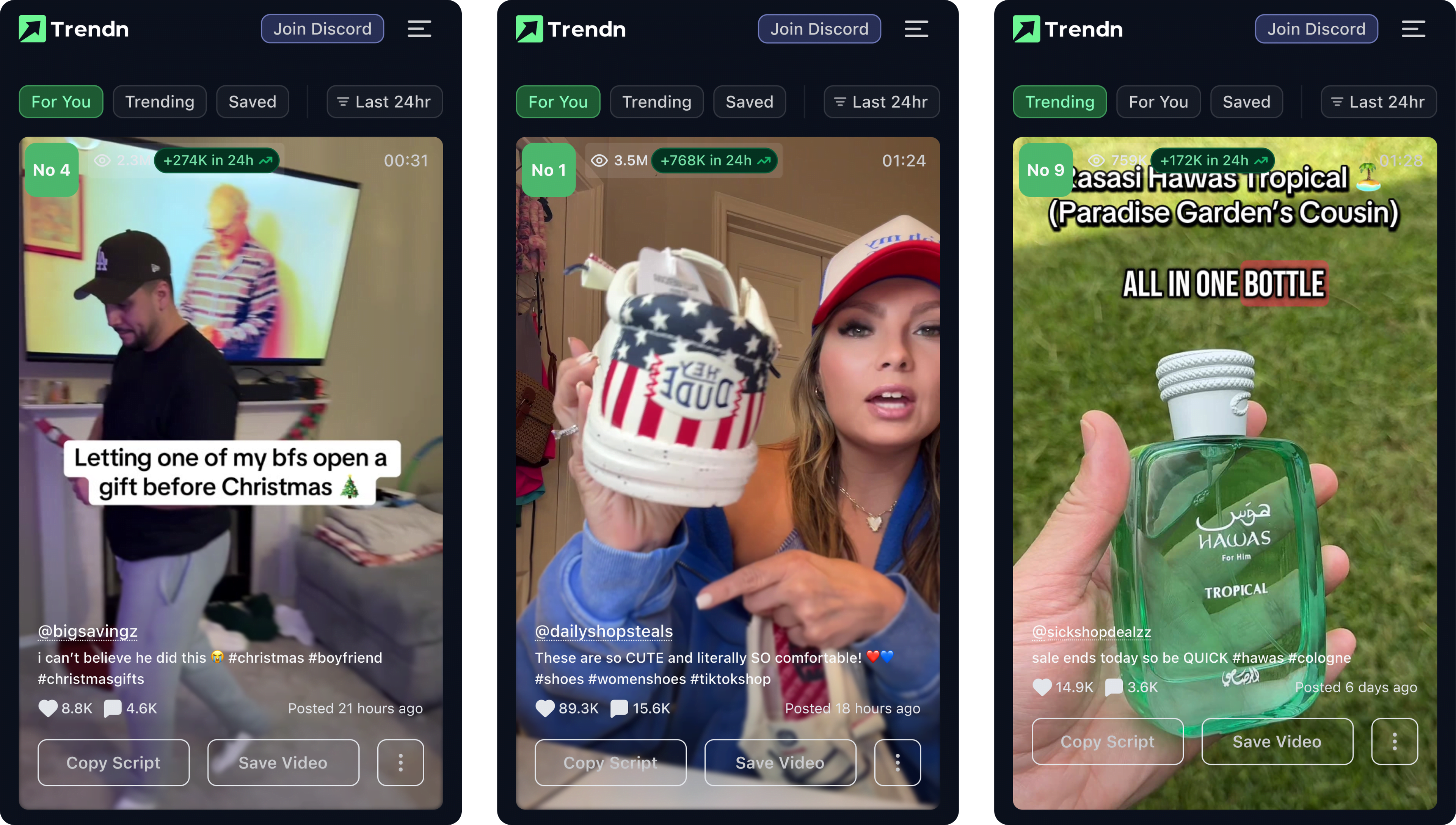 Trendn scrapes 1,000+ high-performing accounts daily to make sure your feed is always fresh.